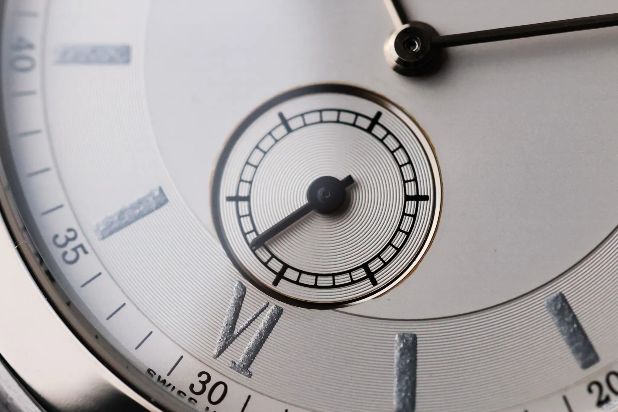 The white dial keeps things simple. Roman numerals mark the hours. Thin minute markers ring the outside. The small seconds sub-dial at 6 o’clock adds just enough detail to keep the layout interesting. Nothing feels crowded, and everything is really easy to read.