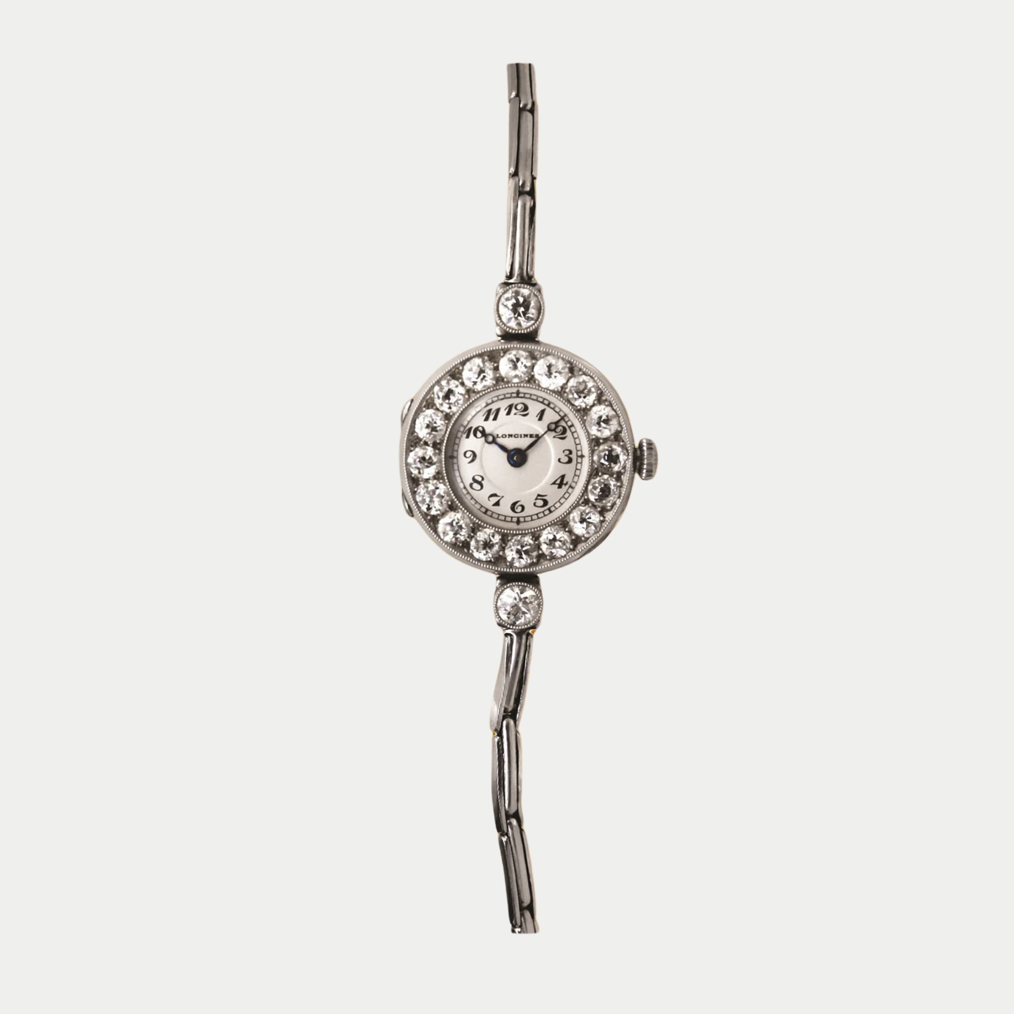 J-Law went simple yet elegant, wearing a vintage Longines cocktail watch dating back to 1916. The timepiece represents a pivotal point in Longines’ history, when the watchmaker was establishing itself as a source for refined dress watches that appealed to high-end clientele. The actress’s choice, a platinum piece with a diamond-surrounded case, was the perfect complement for her sheer, floral Givenchy gown.