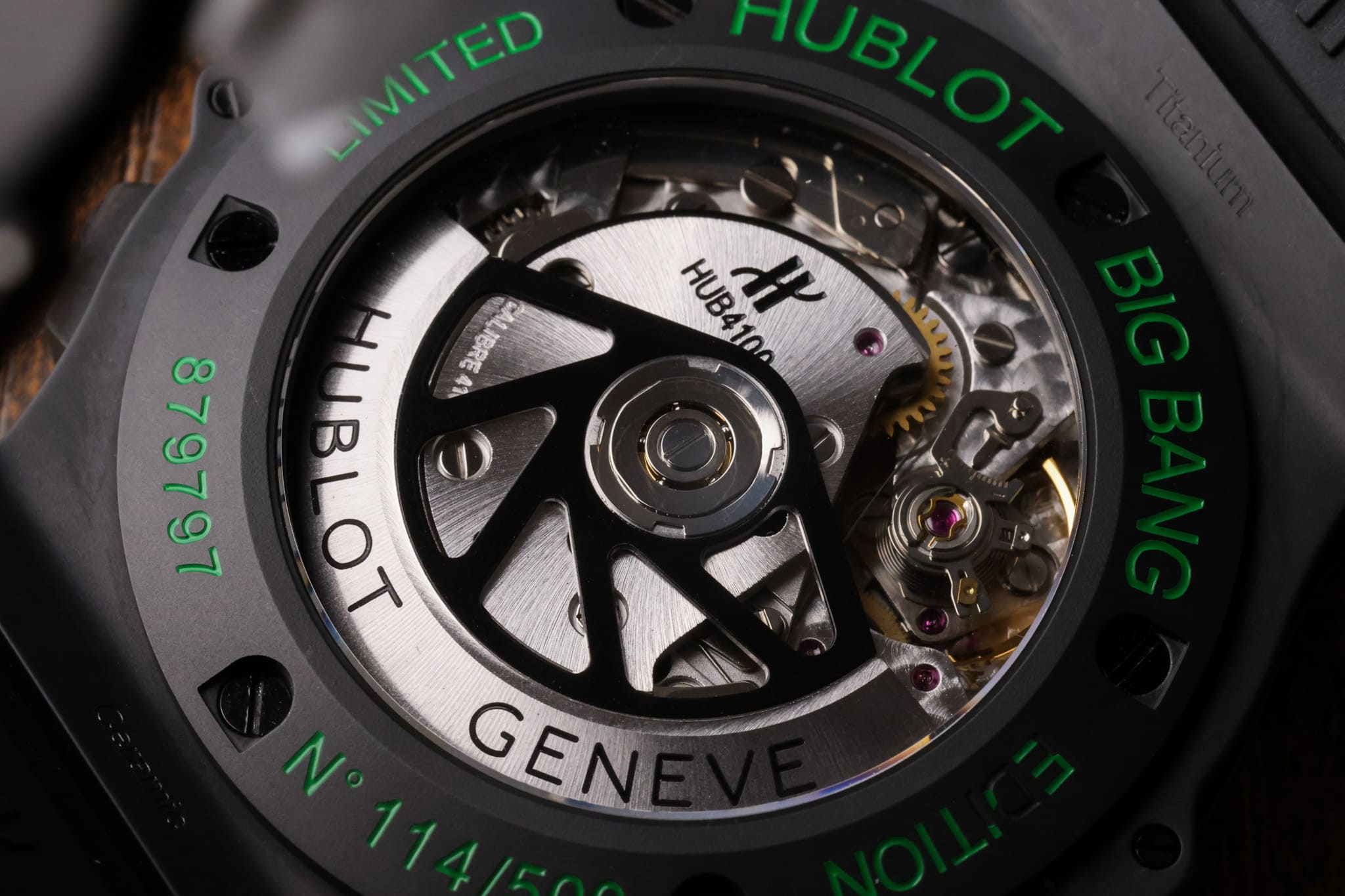 - Movement: Automatic chronograph (HUB 4100)