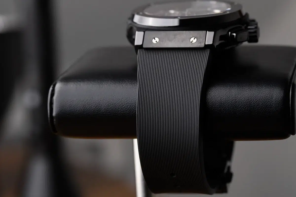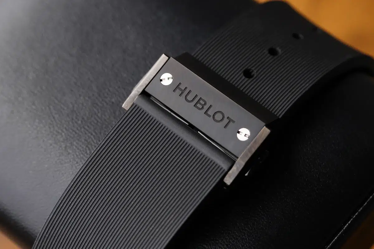 Hublot’s ceramic work is one of the highlights here. We think the ceramic feels a lot lighter than it looks. The case and bezel are finished with a mix of polished and satin surfaces. You get depth here without it being too shiny or flashy. On the wrist, the watch sits flat. The lugs curve naturally, and the case doesn’t tip forward. It feels secure, not top-heavy.
