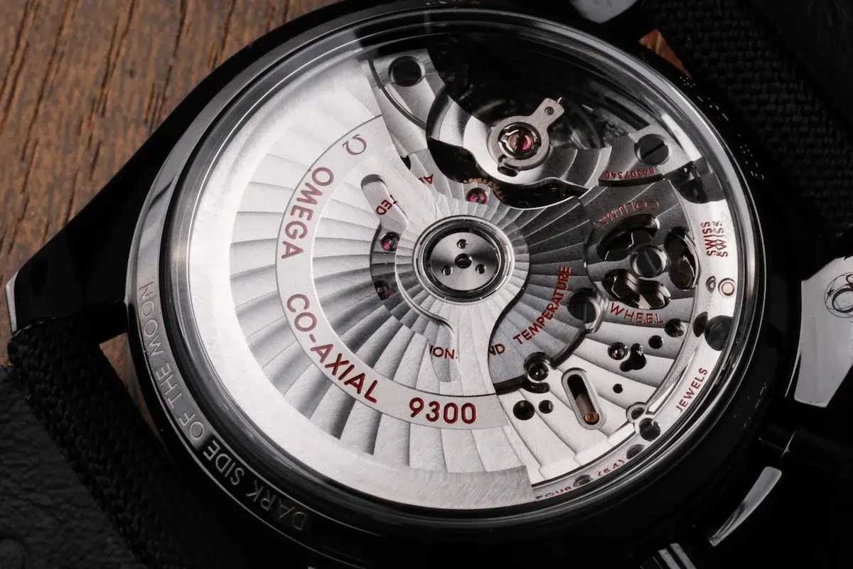 It is an original if it has a unique serial number, the high-quality Omega branding, the laser-ablated moon texture on the dial, and the Caliber 9300 movement visible through the caseback.