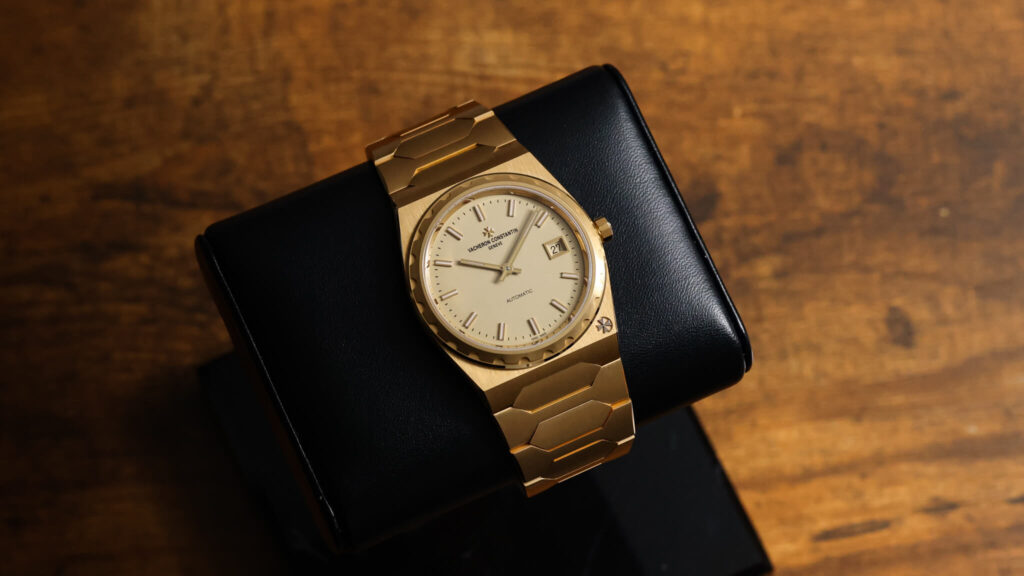 Instead of copying the porthole or octagon shapes that define other integrated sports watches, Vacheron bases the Overseas bezel on the Maltese cross, the brand’s own emblem. The top surface is polished, the lower tier is brushed, and together they give the watch a look that’s instantly recognizable to collectors. We enjoy brands that like to step out of the box. You can learn more about Vacheron Constantin timepieces and what sets them apart from others.