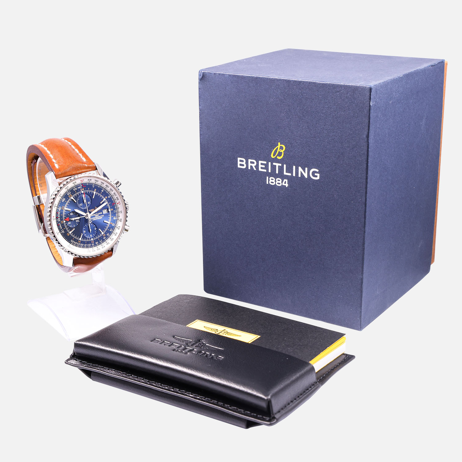 This execution of the Navitimer World pays tribute to aviation legacy and pilot-focused utility. Its large presence on the wrist is balanced by classic Navitimer styling, and the slide-rule bezel remains a practical tool for calculations in flight.