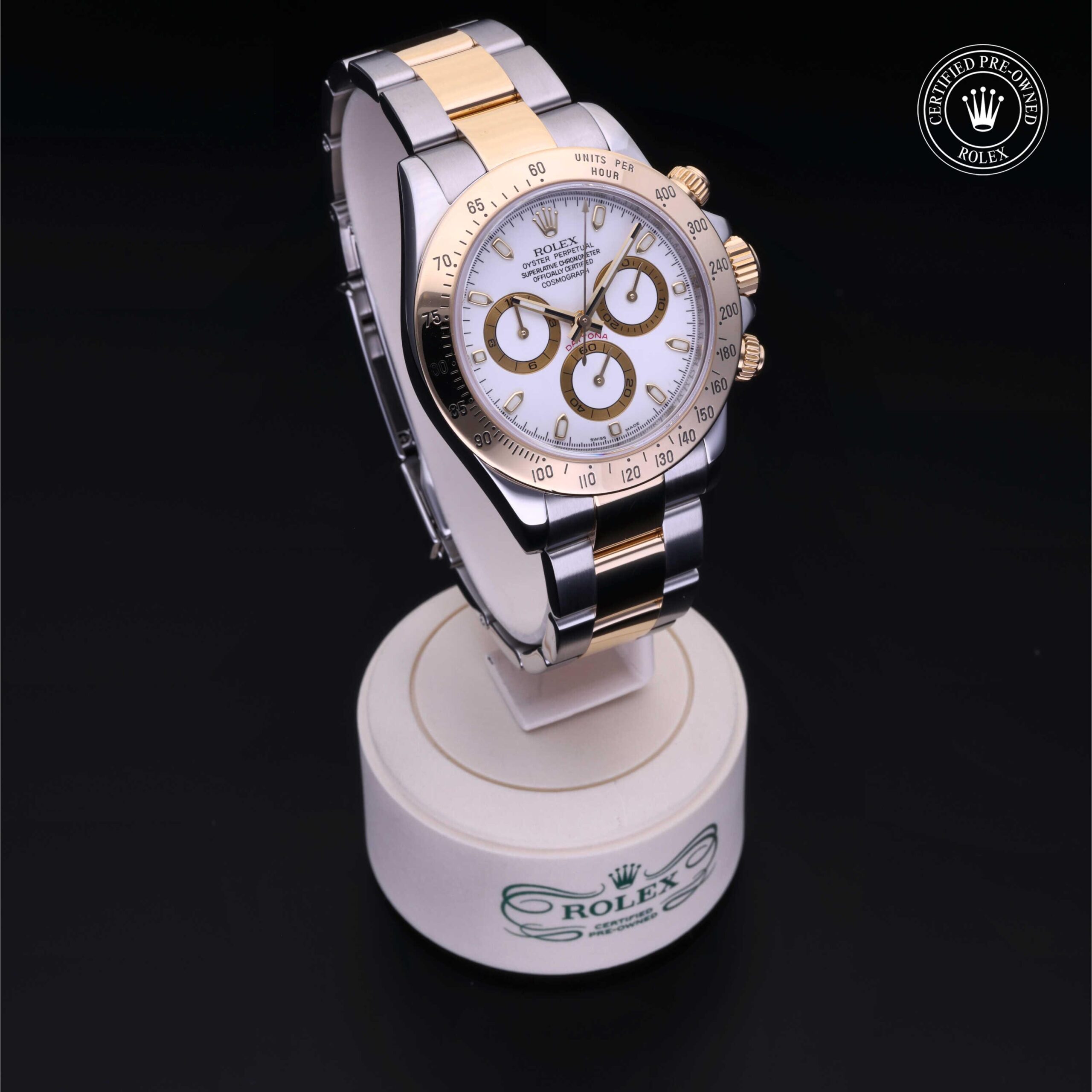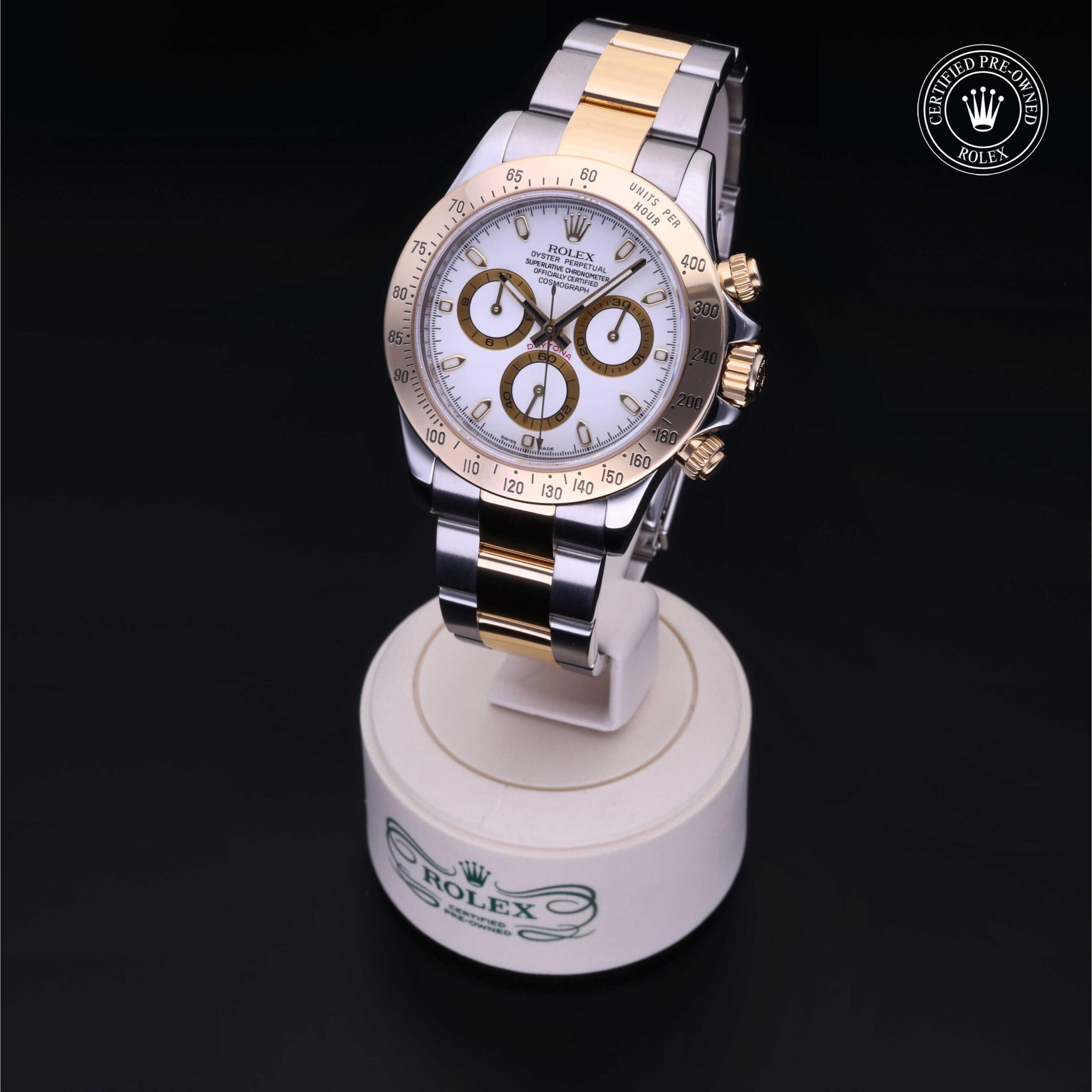 Today, this iconic chronograph is legendary for its reliability thanks to its high-performance mechanical movement entirely developed and manufactured by Rolex. Using the tachymetric scale on the bezel, the wearer can measure time intervals or determine average speeds.