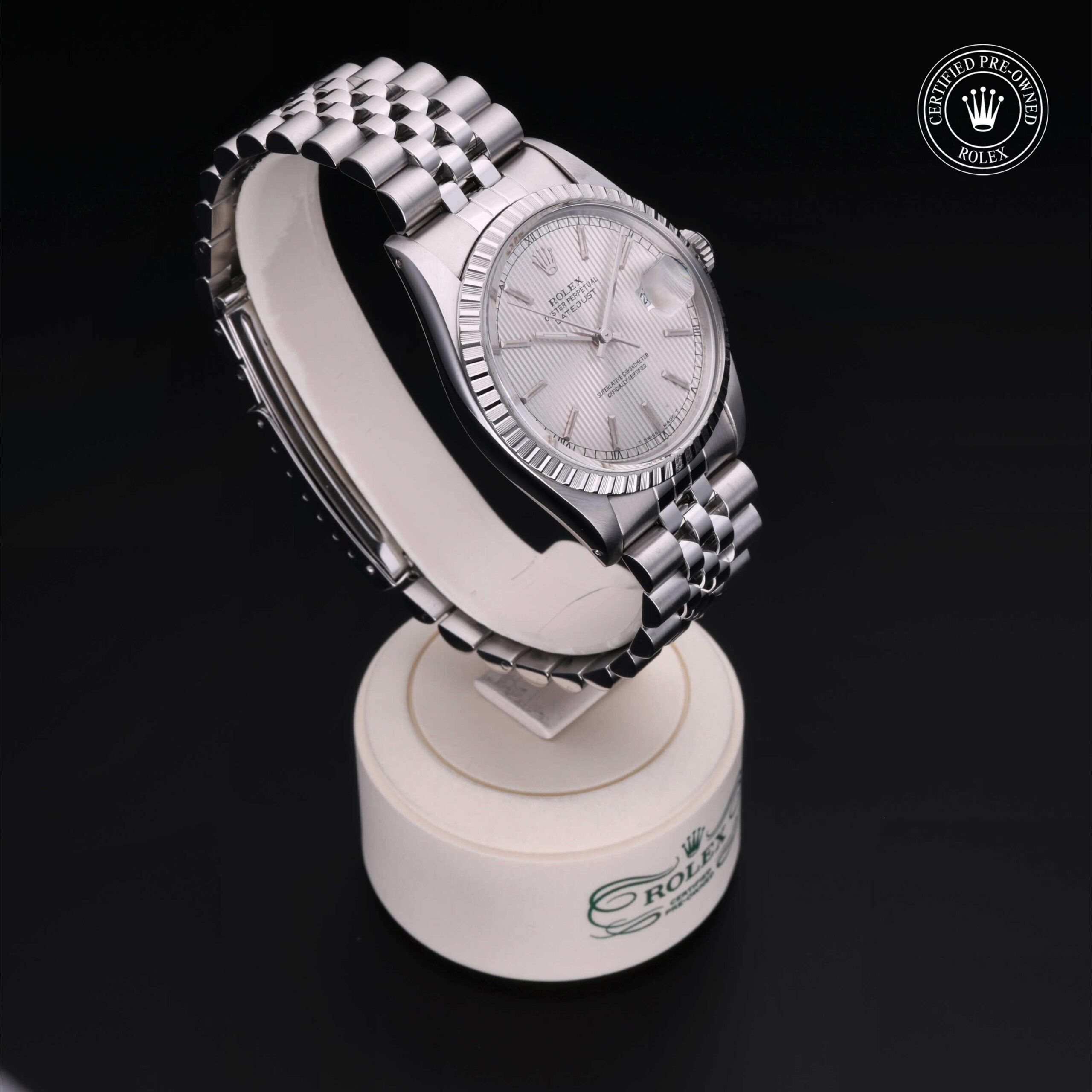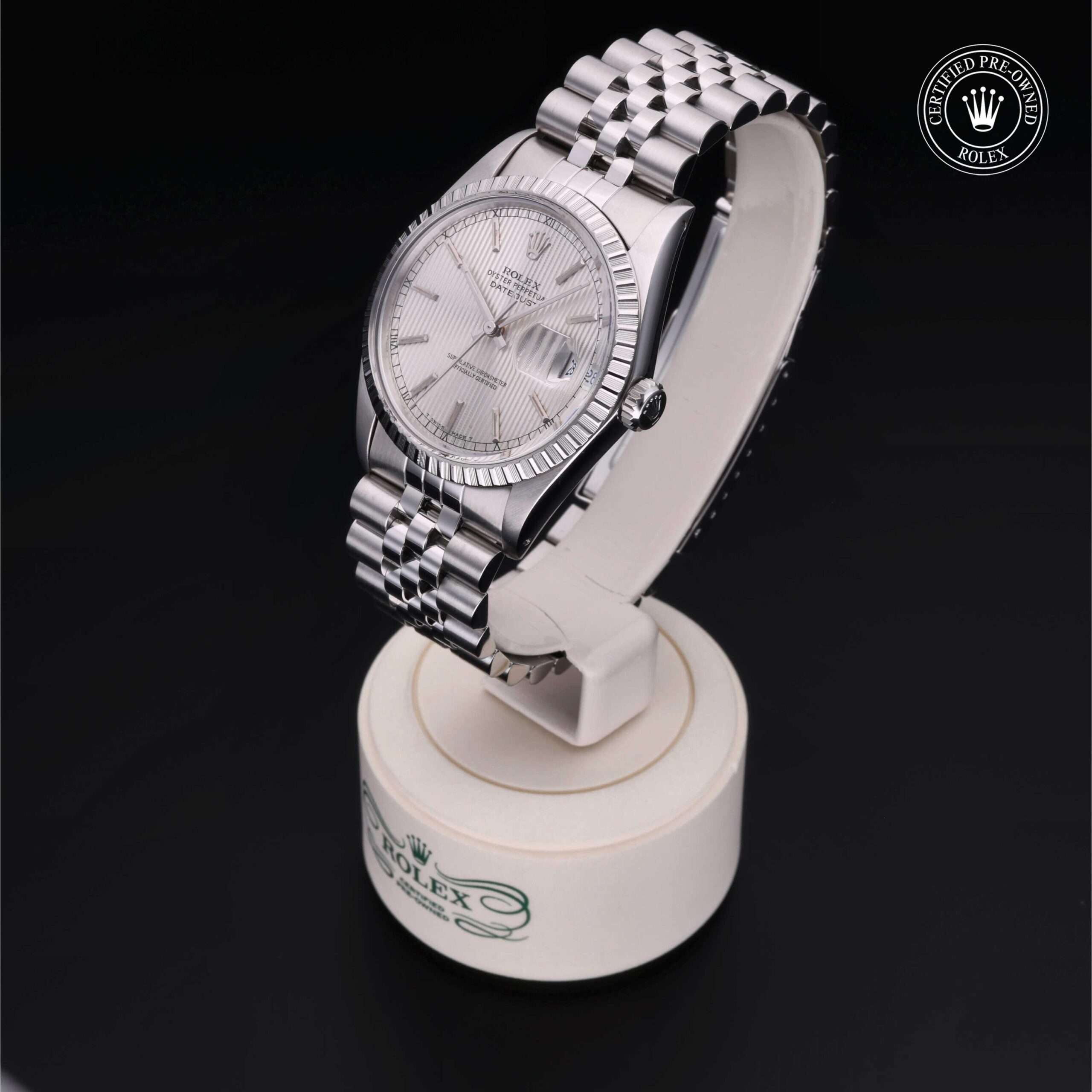 Launched in 1945, it was the first self-winding waterproof chronometer wristwatch to display the date in a window at 3 o’clock on the dial. The Datejust is offered in Oystersteel, in versions combining Oystersteel and yellow, white or Everose gold, or entirely in 18 ct gold, with a large variety of dials, bezels and bracelets. It is also available in diamond-set versions.