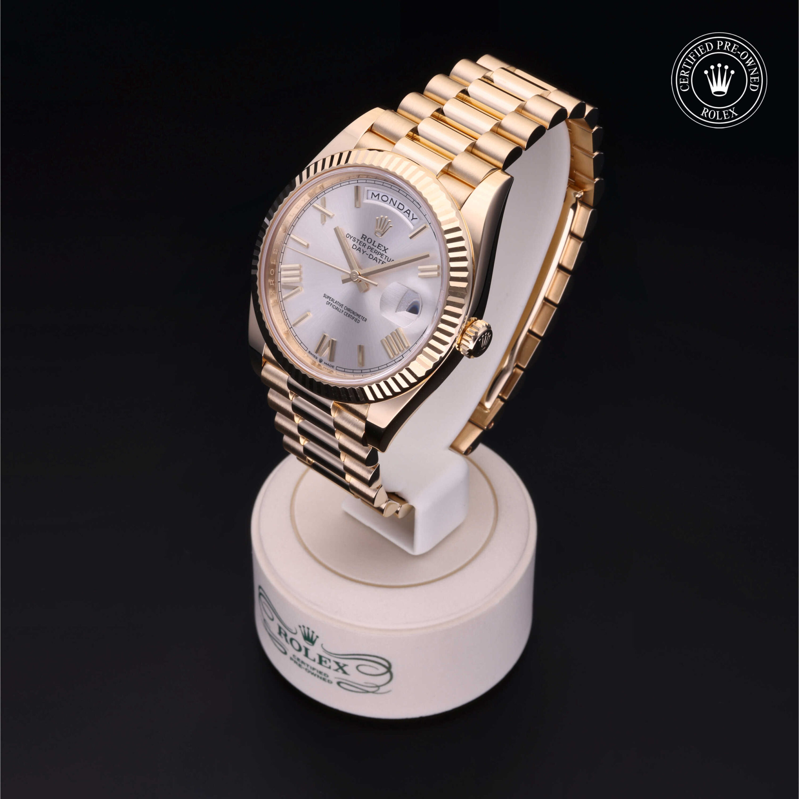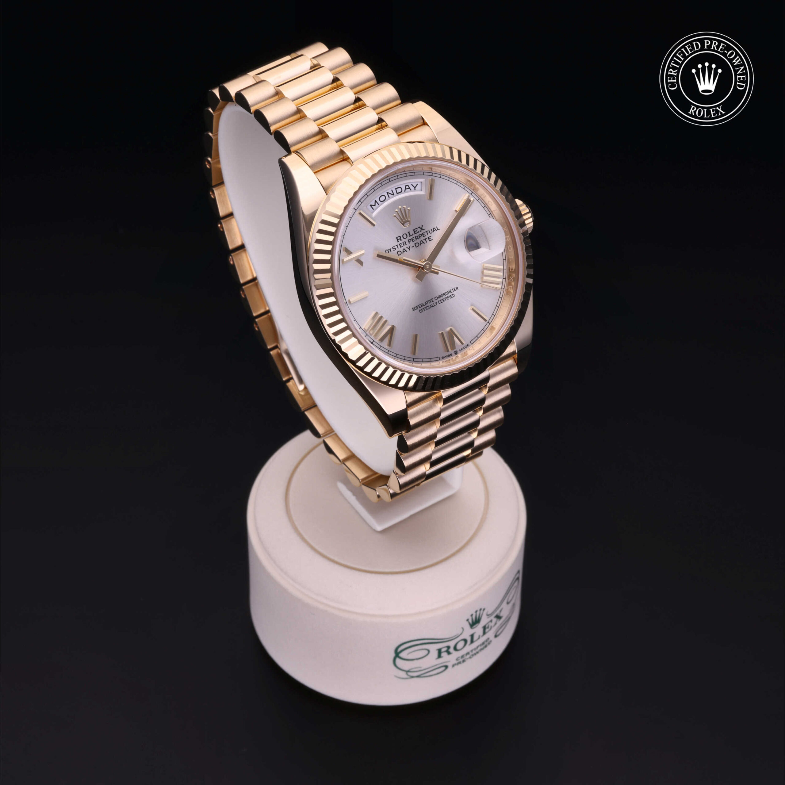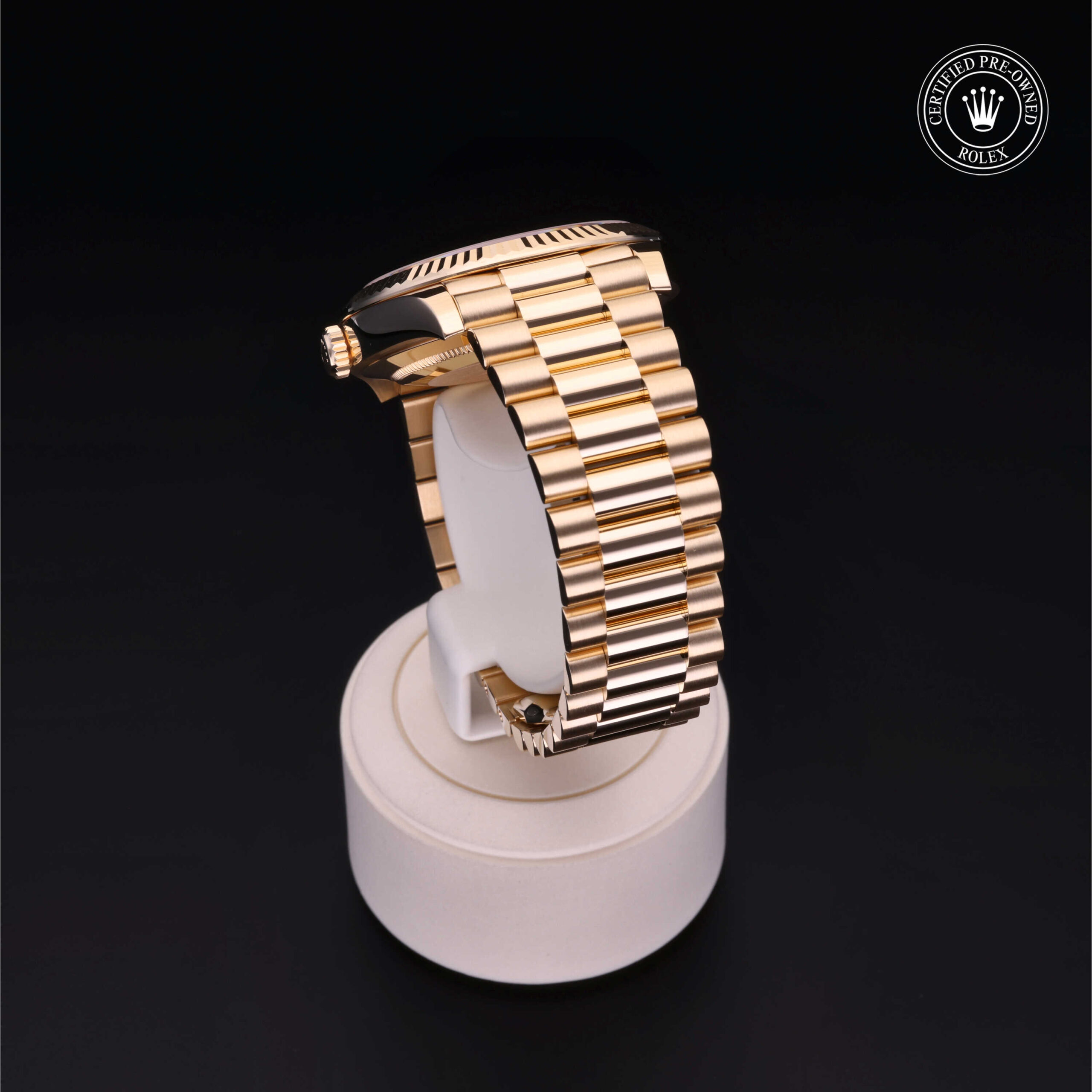 535-2003796The Oyster Perpetual Day-Date, available only in 18 ct gold or 950 platinum, embodies the essence of Rolex prestige and excellence.