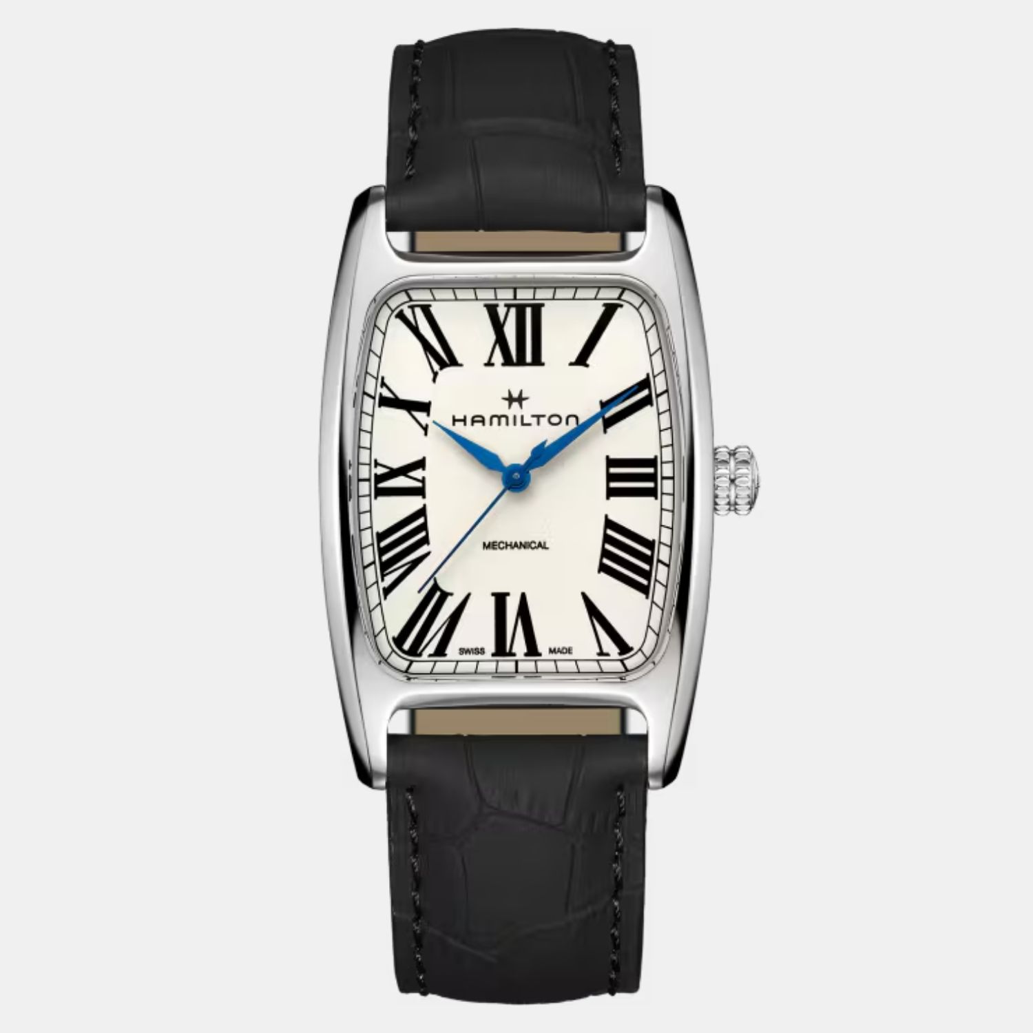 The price is a bit higher, but the Hamilton Boulton Mechanical brings a refined, vintage touch to this year’s lineup. First introduced in the 1940s, the Boulton remains one of Hamilton’s most distinctive and enduring designs. Its curved rectangular case and clean dial channels pure Art Deco elegance, a perfect complement to formal or holiday occasions.