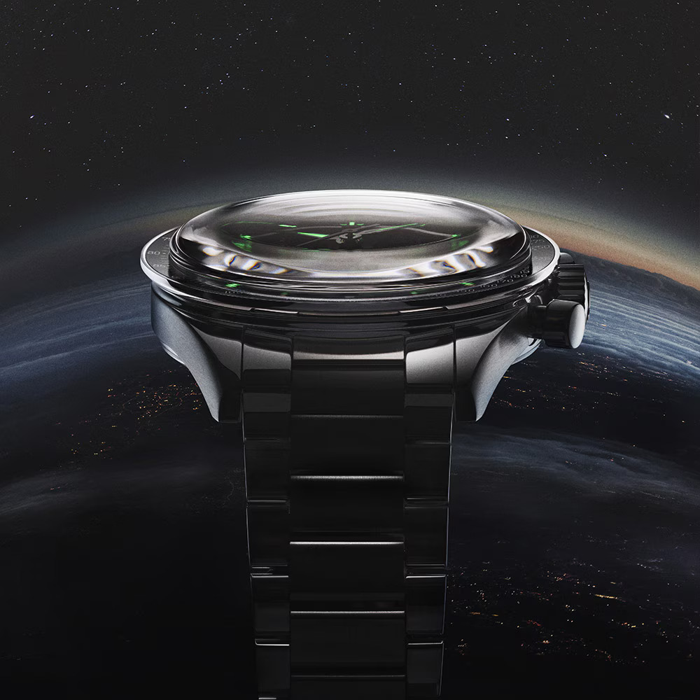 Omega has retained the familiar aesthetic of the original FOIS Speedmaster, with updates like the "dot over ninety" bezel and applied Omega logo, evoking a nostalgic connection to the early days of space exploration.