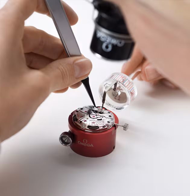 During a service visit, the technician will completely disassemble your watch to clean any dirt, dust, grime, or debris that has accumulated inside. If they identify damaged parts, they will replace them with authentic OMEGA components. The technician will then reassemble the watch and check its water resistance and power reserve, ensuring it’s in proper working order.