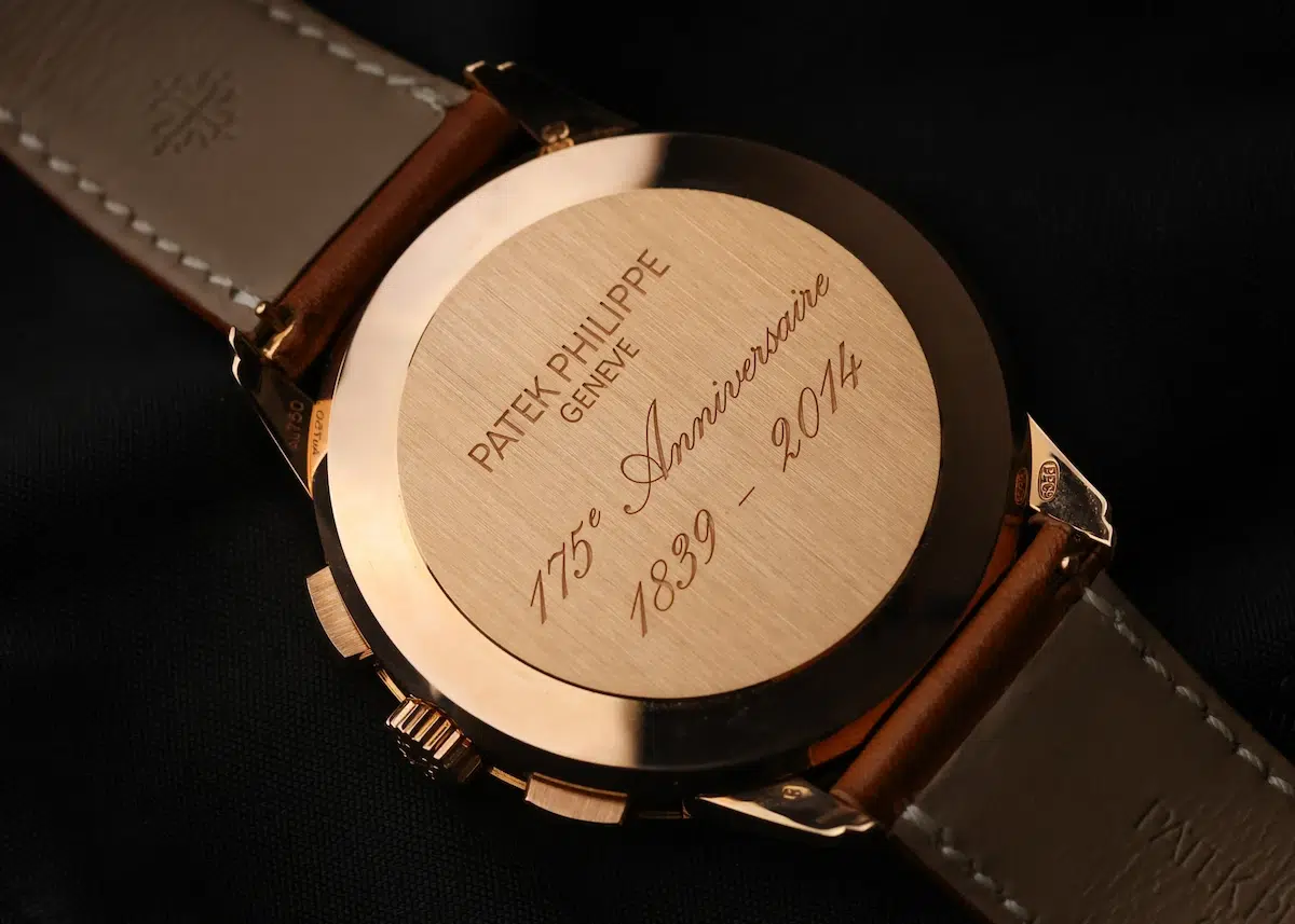 The movement may not be viewable, but the caseback is attractively engraved, making it a true collector’s item. It reads Patek Philippe’s founding and anniversary dates, 1839-2014.