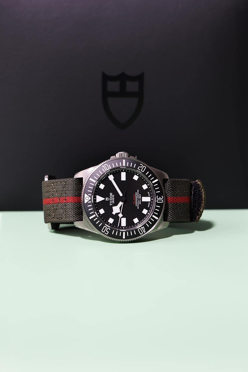 Complementing its majestic appearance is a one-piece fabric strap in forest green, highlighted by a striking red stripe. For those seeking an alternative, Tudor offers an additional one-piece rubber strap, ensuring versatility for every occasion.